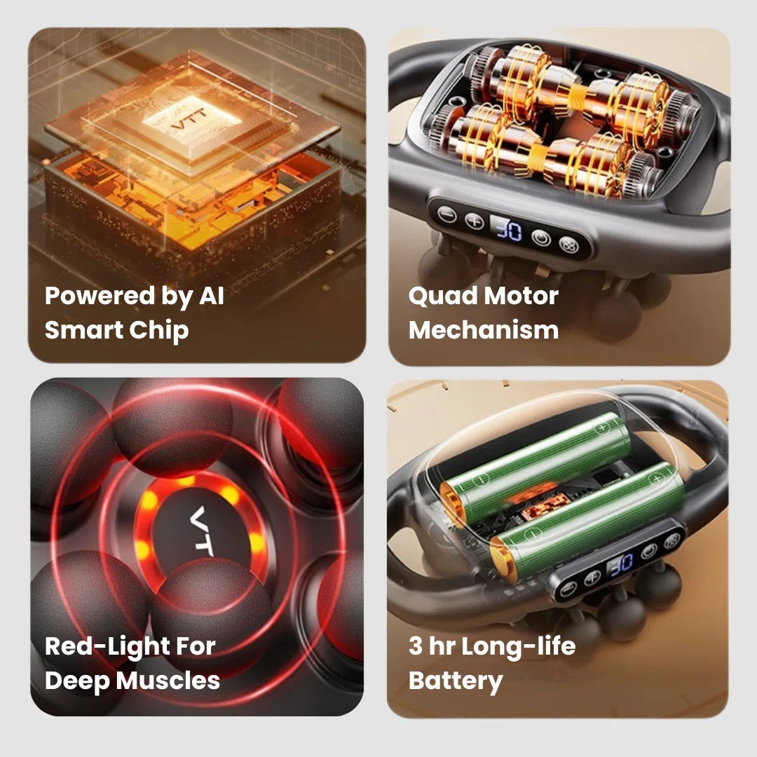 "The combination of deep percussion and red light therapy addresses both immediate muscle tension and underlying inflammation—it's the closest thing to clinical-grade care you can do at home."