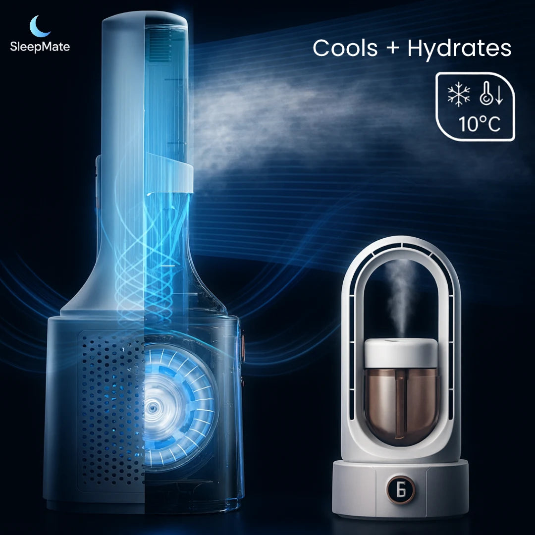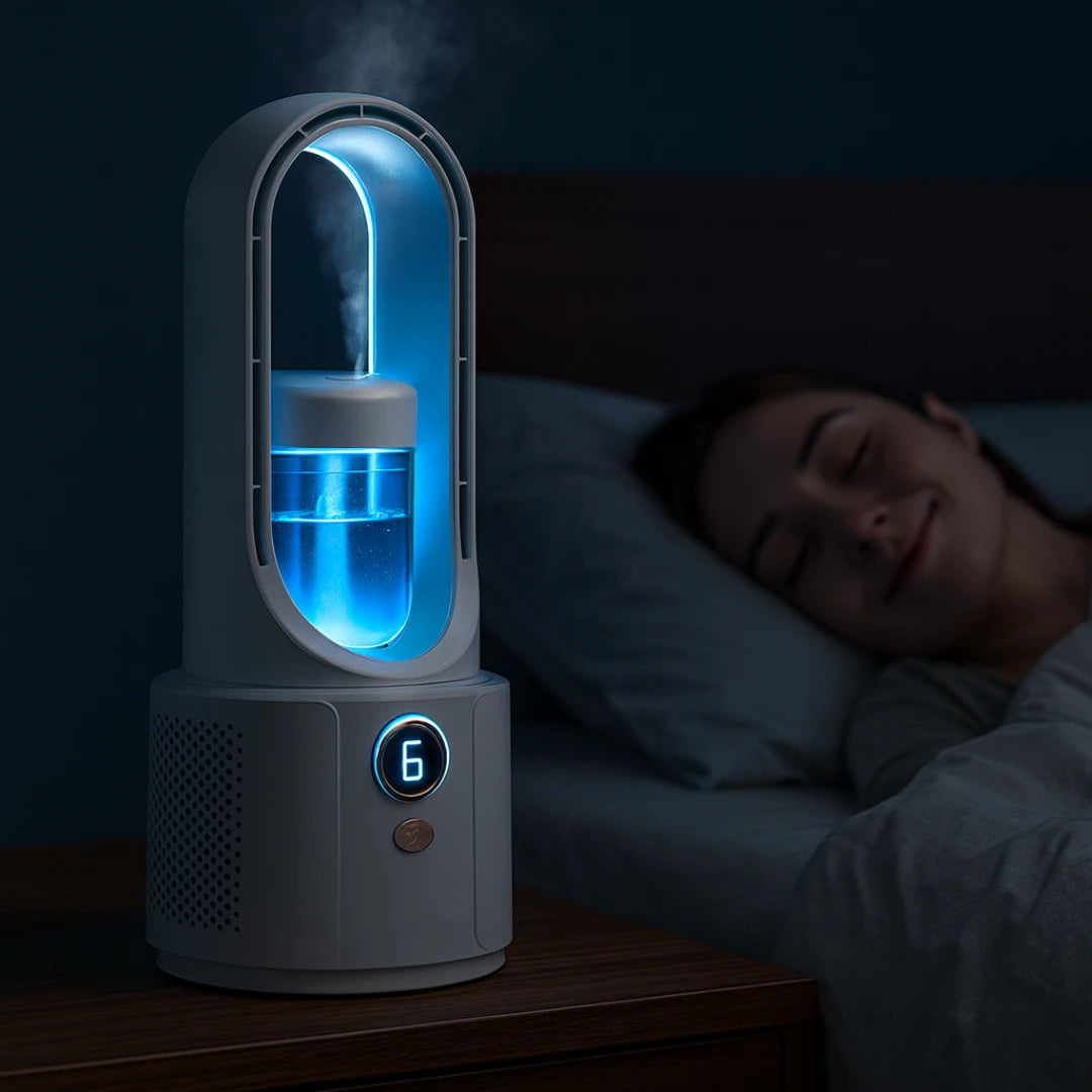 The first whisper-quiet, bladeless fan that cools AND hydrates — engineered for Australian summers where fans are too loud and the air is bone-dry.